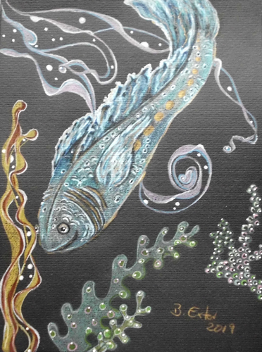auf schwarzem Künstlerpapier. Die Aquarelle sind mit normalen - und Inteferenz