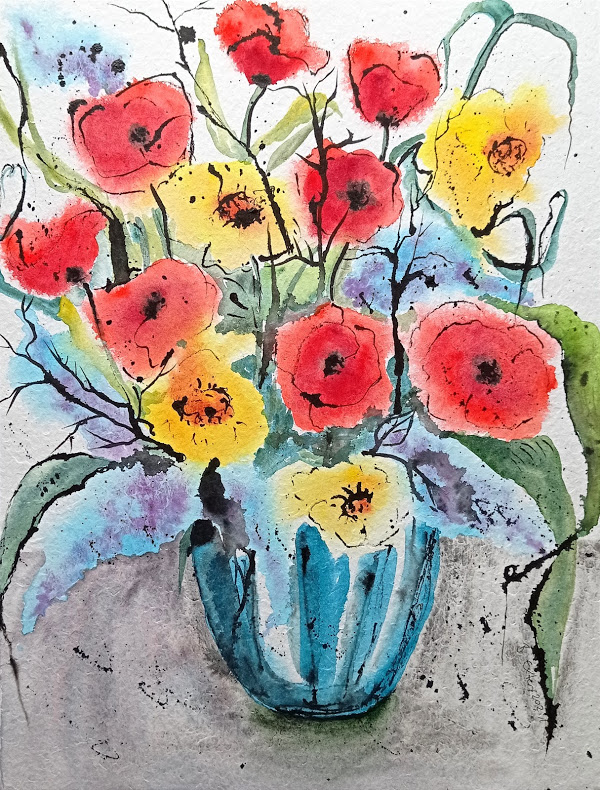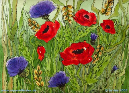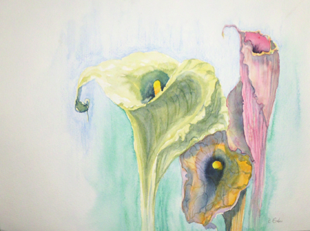 Hier finden Sie Blumenbilder in Aquarell. Gemalte Blumen verblühen