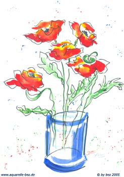 Hier finden Sie Blumenbilder in Aquarell, farbige Kohle, Pastell,