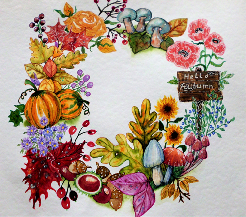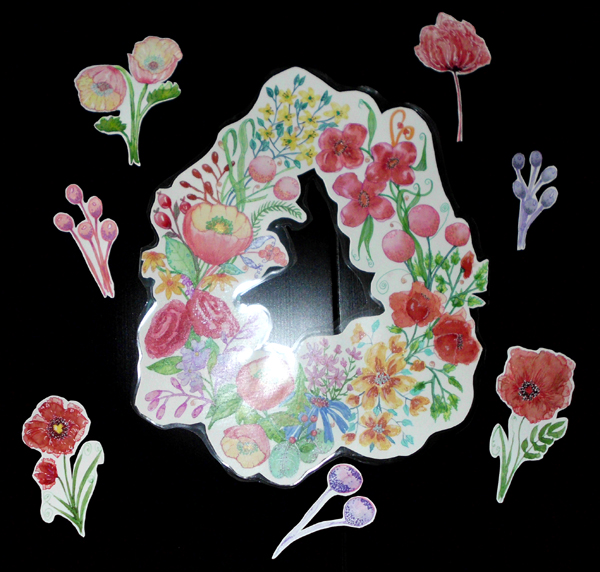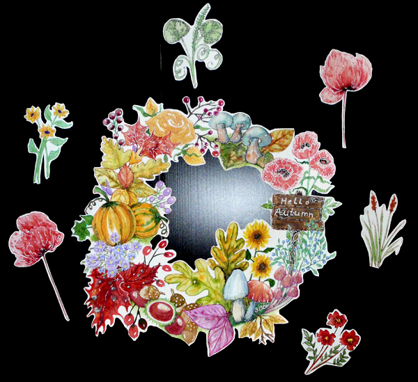 Hier finden Sie Türkränze in Aquarell, die geschnitten und laminiert werden, sodass man sie an die Wohnungstür kleben kann. Die Kränze sind, genau wie jedes andere Aquarell, mit hochwertigen Künstleraquarellfarben auf Künstleraquarellpapier gemalt. Man kann - je nach Saison - immer wieder die Kränze an der Tür austauschen. Durch das Laminieren sind sie praktisch unbegrenzt haltbar und lichtecht. Die Kränze auf den Fotos sind noch nicht geschnitten. Weitere Kränze sind in Arbeit. Zu den aktuellen Kränzen hatte ich die Idee, noch einige einzelne Elemente dazu zu malen und zu laminieren. Ich finde, es sieht richtig gut aus.