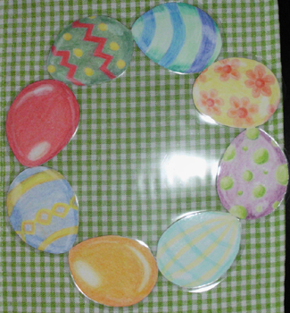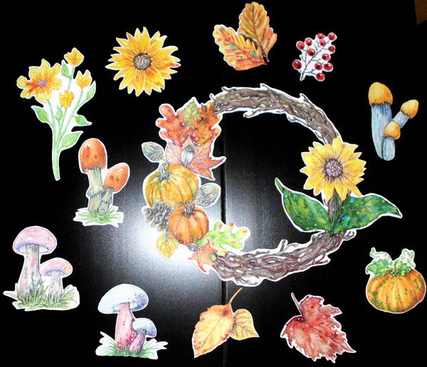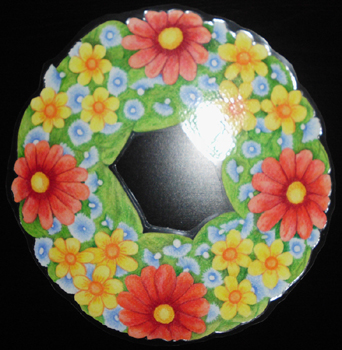 So sieht ein fertig geschnittener und laminierter Kranz an der Tür aus.
