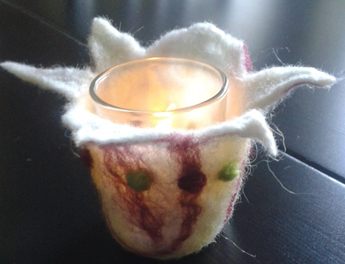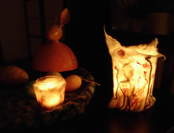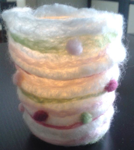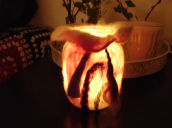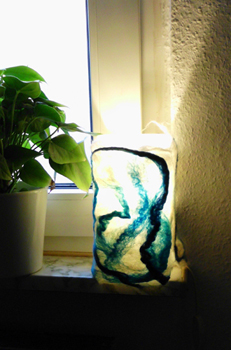 Ein "Lampenkleid"- nass gefilzt und über eine Tischlampe gezogen