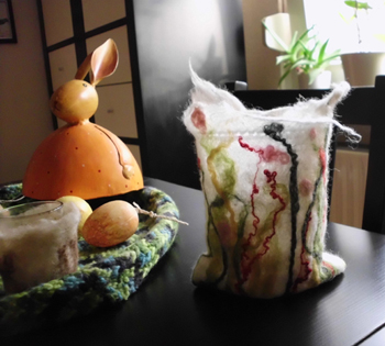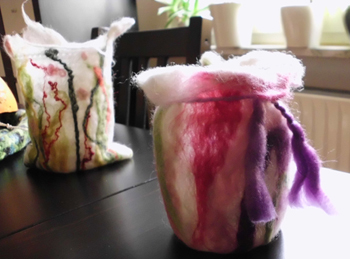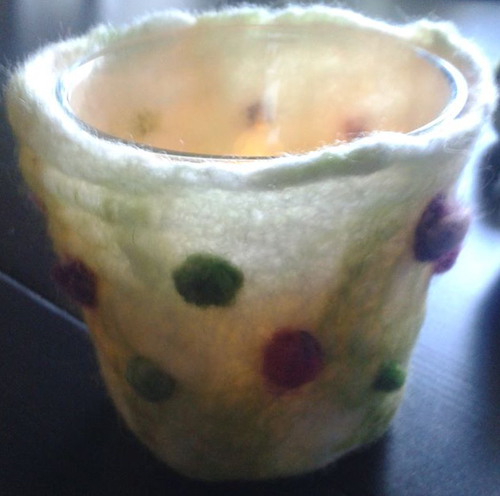 Eine "Windlichttasche" mittelgroßes - nass gefilzt - Ein abstrahiertes