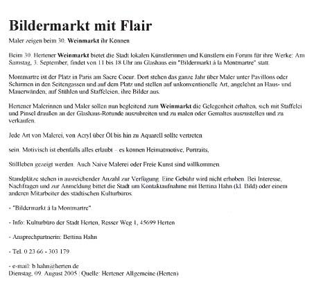 Ausstellung und Plein Air Malerei beim "Montmatre am Glashaus" - Weinmarkt Herten 2005