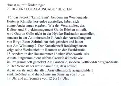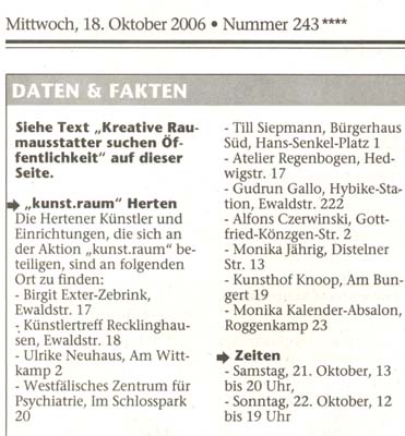 2006 - Projekt Kunstraum - Tage der offenen Ateliers und Galerien